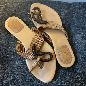 Dior Tan Sandals with Black Embellishments