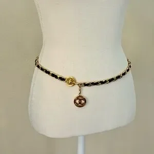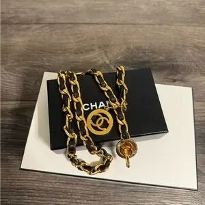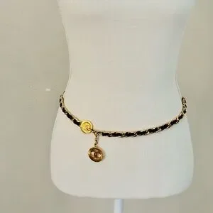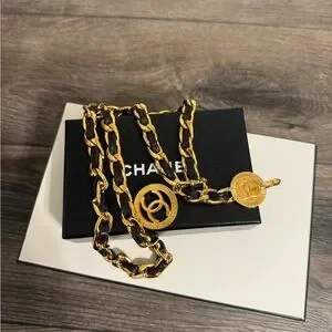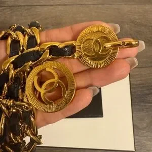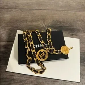 Vintage Chanel CC Coin Logo Leather Chain belt which can also be styled as a necklace