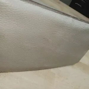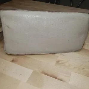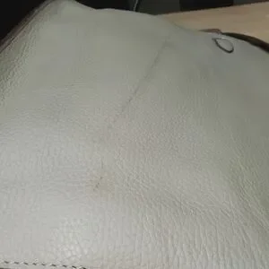 this bag does have damage. it's unfortunate it was damaged during a move from box cutter. as you can see in photos it appears the damage was repaired poorly. I honestly don't know if it's repairable or not. maybe someone can revamp it, but it is a beautiful bag. please review pictures of damage. the damage is on the bottom of bag and backside.