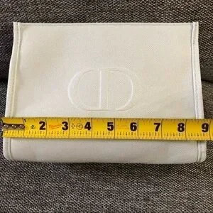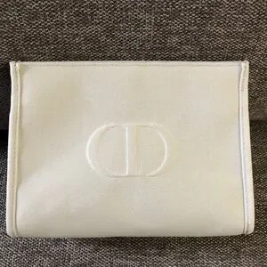 Dior Beauty Pouch Makeup Bag Light Grey Medium Canvas Authentic