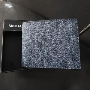 MK admiral blue wallet with textured design. Ideal for daily use. brand new with tag and box.