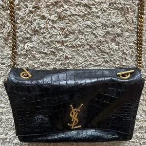 Saint Laurent Black Croc-Embossed Crossbody Bag