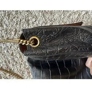 In great condition. Comes with dust bag. Black crocodile leather print reversible to a gorgeous brown camel tone suede. Gold hardware. Adjustable chain.