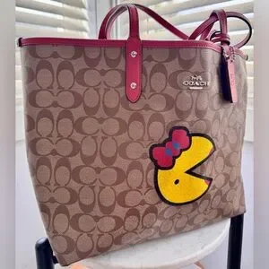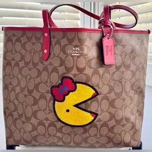 EUC Coach x PAC-MAN reversible City Tote in signature canvas with a Ms. Pac-Man graphic, matching hang tag, and matching attached zippered pouch.❤️