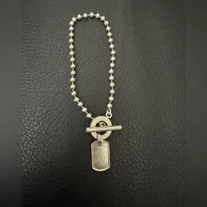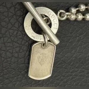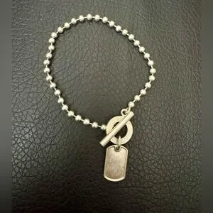 Gucci sterling silver bracelet, Dog Tag Ball Chain Toggle Bracelet, measurements 8”, toggle clasp closure, used good condition.