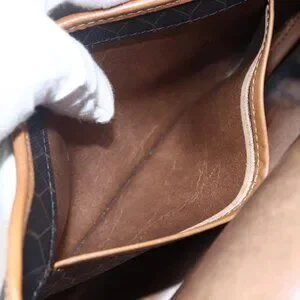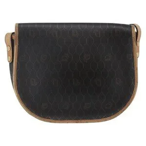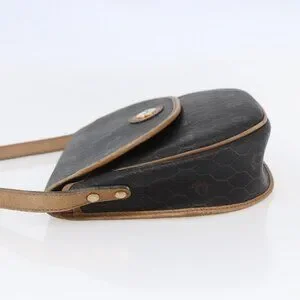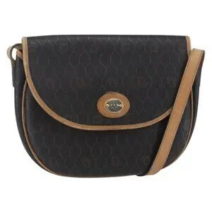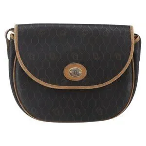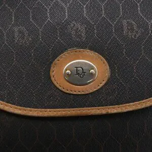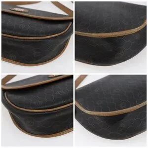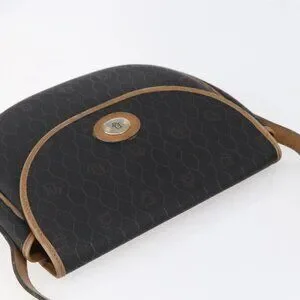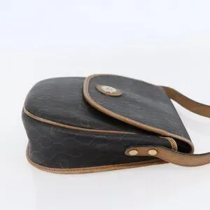 Christian Dior Honeycomb Canvas Shoulder Bag PVC Leather Black Auth BA6822