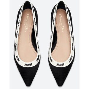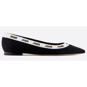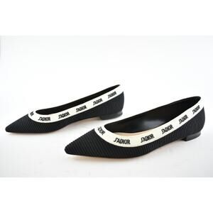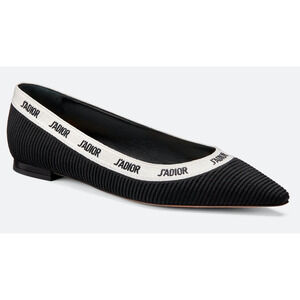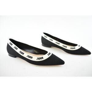 Dior J'adior Black White Ribbon Logo Embroidered Fabric Ballet Ballerina Flat 37