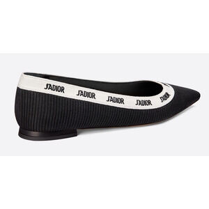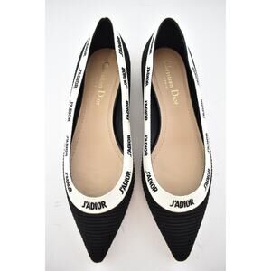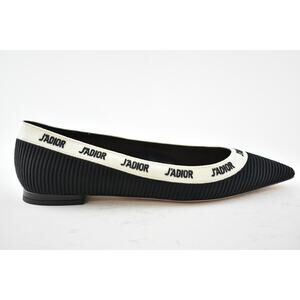 Dior J'adior Black White Ribbon Logo Embroidered Ballet Ballerina Flat 37