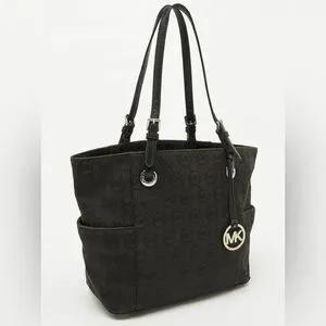 Black MICHAEL Kors Jet Set Tote Bag with Signature Canvas Print