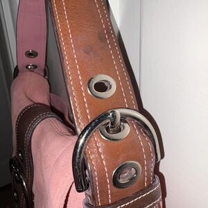 Coach Pink and Brown Suede Shoulder Bag
