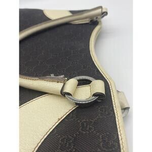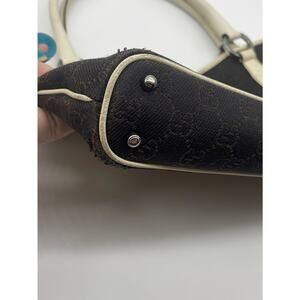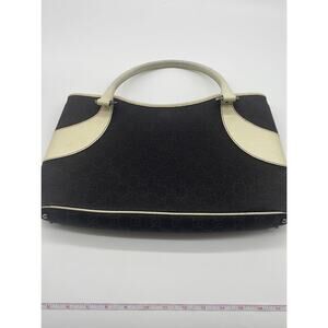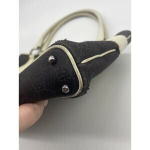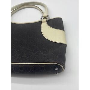 Gucci Logo Canvas Tote/Shoulder Bag, good to fair condition, wearing on corners, fraying on handles, inside has no stains, could use a cleaning, some scratches on leather, please see all pics, approximately 15x9x2 inches