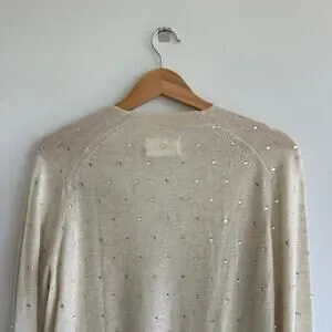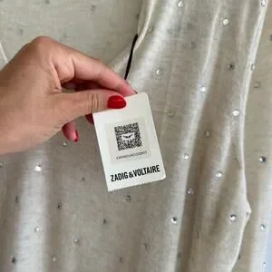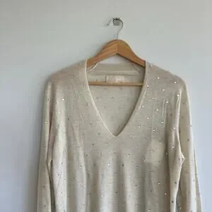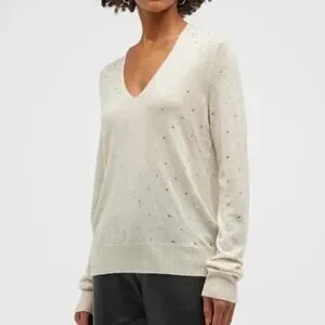 Zadig & Voltaire Elya Strass Embellished Cashmere Pullover Sweater Cream L NWT