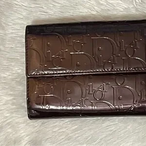 Dior Dark Maroon Embossed Leather Bifold wallet
