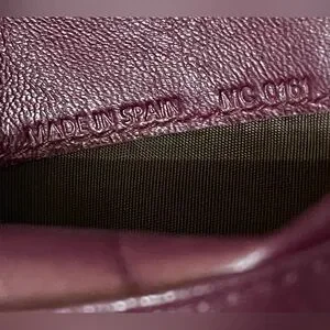 Elegant Dior belt with embossed design. Luxurious dark maroon leather with gold hardware. Preowned and clean inside /out. Well cared for. * interior snap closure is stubborn at time for closure. Otherwise beautiful condition.