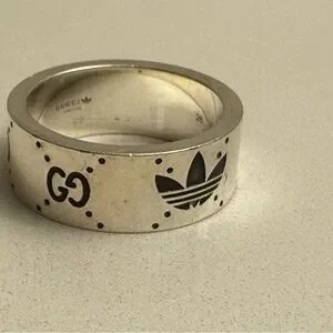 Elegant silver band featuring the classic Gucci emblem and adidas logo. Limited collab drop from a few years ago. Ideal for everyday wear.
