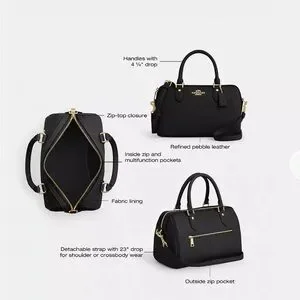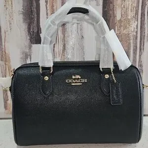 Coach satchel in black with tag. Crossbody. Features elegant gold accents. Back zipper pocket. Perfect for any occasion.