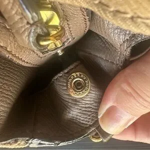 Chic tan & brown-grey tones. Comes with the original dust bag and detachable long strap.