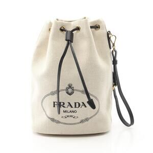 Prada Mistolino pouch bag canvas Saffiano leather Ivory White black