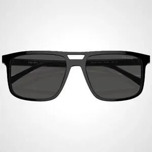 New PRADA Sunglasses Black Aviator Square Silver Metal Logo 58mm