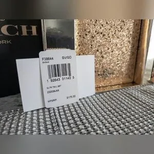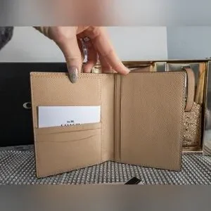 Elegant Coach Crossgrain Leather glitter travel set with a passport holder that has 3 credit card slots, and slip pockets for passport and documents, also a luggage tag with a buckle closure and comes with original Coach gift box and care instructions.