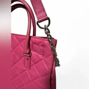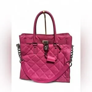 Michael Kors Quilted Leather Hamilton Tote Hot Pink Top Handle + Shoulder Chain Strap with Lock