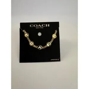 Coach Enamel Gold Chain Necklace Coach Letter Charms NWT