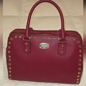 Michael Kors Red SANDRINE STUDDED SATCHEL