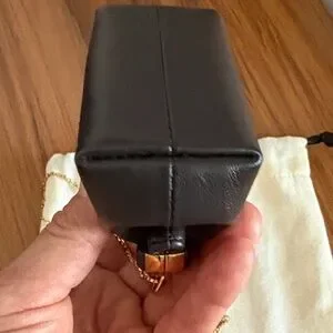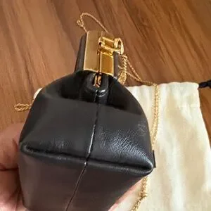 Stylish Fendi mini bag in sleek black. Features elegant gold chain and hardware. Ideal for a sophisticated look.