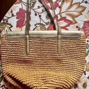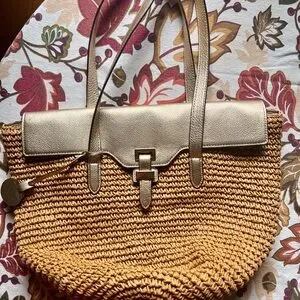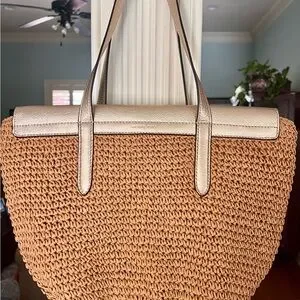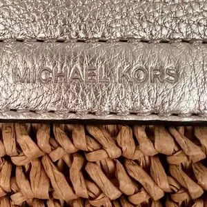 Michael Kors NAOMI Metallic Leather & Straw Tote coastal cowgirl Beach Vacation