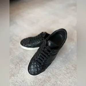 Burberry Quilted Leather Sneakers – Black with White Soles