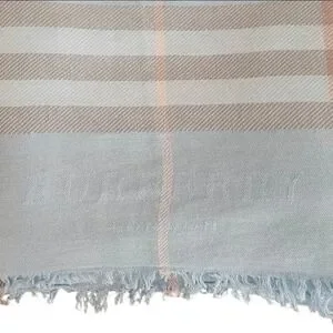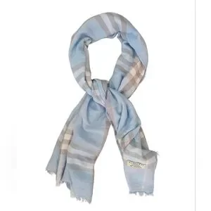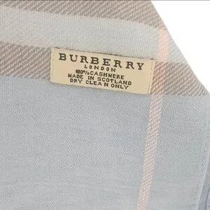 Burberry London 100% Cashmere Powder Blue Tan Cream Check Luxury Designer Scarf