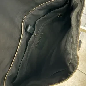 Stylish Coach laptop bag. Signature tan design. Black leather accents. Ideal for work or travel. Used in great condition.