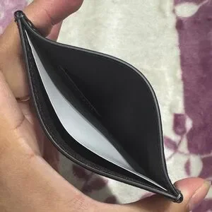 Elegant card holder by Coach. Features signature pattern and multiple slots.
