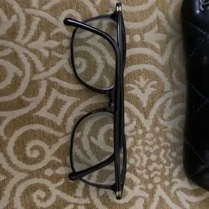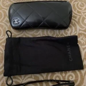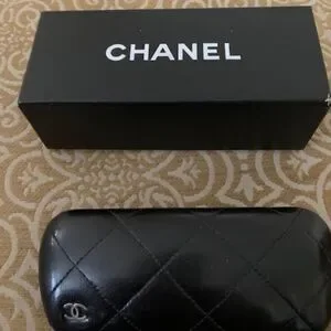 Chanel Black rim eyeglasses pre owned. These have been altered. It includes Chanel hard case, box eyeglasses, soft case the case shows a little wear on corner. . You will need to alter the lens to your needs. They are in good condition and show a little wear on the Chanel leather case.