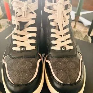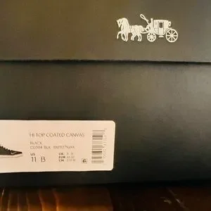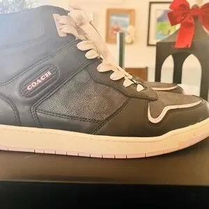 Elegant Coach sneakers in black. Features iconic logo detail. Brand new in box, never worn.