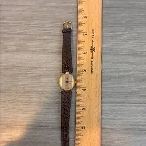 Elegant vintage Gucci watch with a brown leather strap and gold accents. Perfect for any occasion. Just had battery and screws replaced. In excellent working condition!