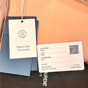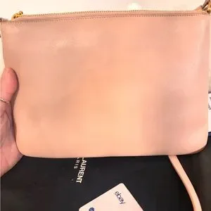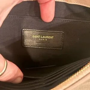 Chic Saint Laurent crossbody in blush. Features gold YSL logo and tassel detail. Perfect for adding elegance. RETAIL $2200
