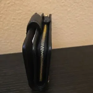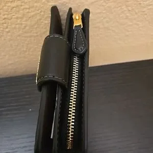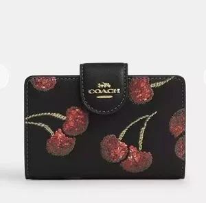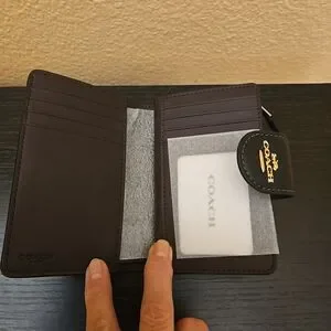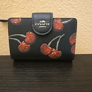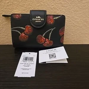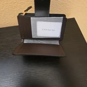 coach, brand new with tag, authentic, leather, zip and snap closure, black multi color, medium size 5×3.5×0.5