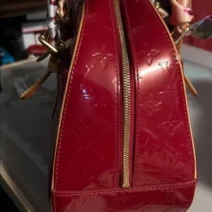 Louis Vuitton Summit Drive handbag in Monogram Vernis patent leather, likely in the color Amarante or Cerise
