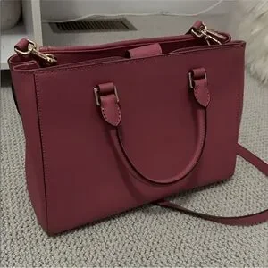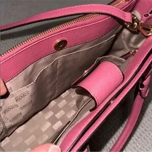 Stylish rose satchel by Michael Kors. Features elegant gold accents. Ideal for versatile use.