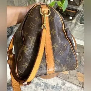 Preloved Authentic Bandolier Louis Vuitton 30 with iconic monogram pattern. In excellent condition, exterior surfaces are intact, corners intact, minimal water marks only. No key included.