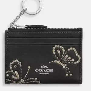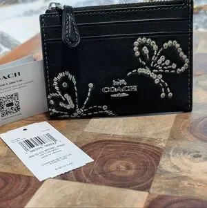 Coach Skinny Mini Smooth Leather Embroidered Butterfly Zip Close ID Case Nwt ❤️