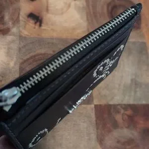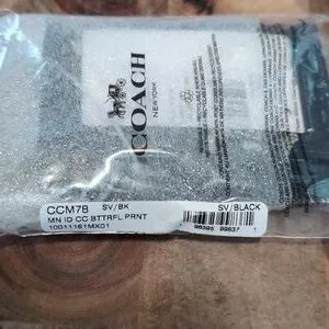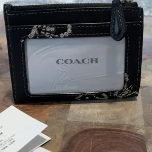 Elegant and stylish, this Coach card holder features a sleek black design with eye-catching embellishments. Perfect for organizing your essentials with a touch of luxury.