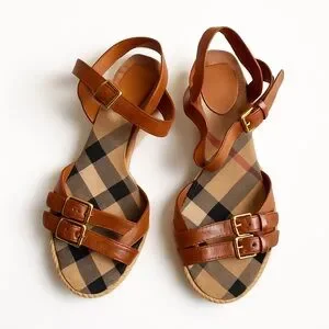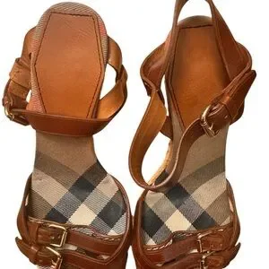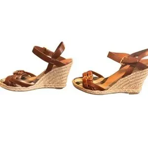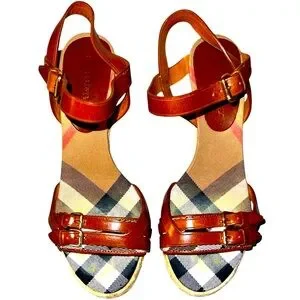 Burberry Tan Leather Check Canvas Espadrille Wedge Sandals Italy Size 35