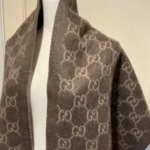 ❤️🔥CLEARANCE❤️🔥 NWT Gucci Dark Brown GG Patterned Cashmere Shawl, 45x190 cm