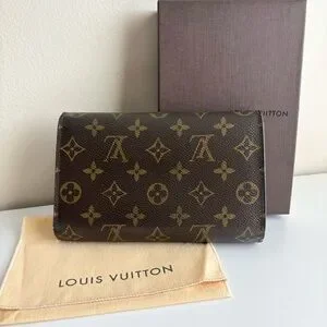 Louis Vuitton Monogram Trifold Wallet Brown Leather Snap Authentic