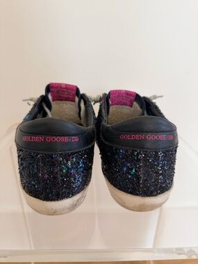 Golden Goose Navy Glitter Sneakers with Yellow Star and pink tag Superstar 38