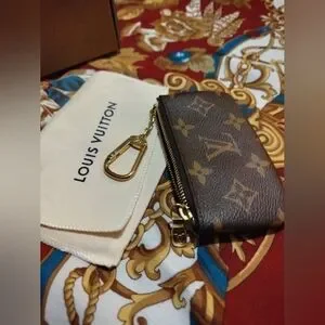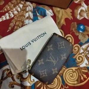 This key case is made from the iconic Monogram fabric, ingeniously presenting functional accessories. It can hold keys, coins, cards, folded banknotes and other small items, and adds security with the LV embossed zipper. It can be fixed onto the D-ring inside most Louis Vuitton handbags, or it can be transformed into a bag accessory or belt pendant.