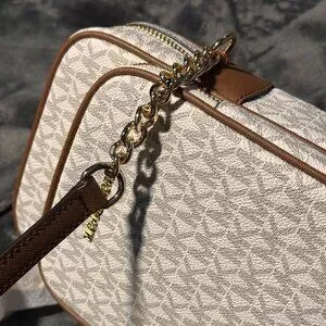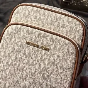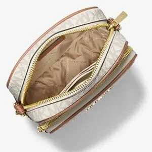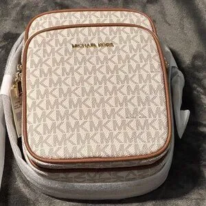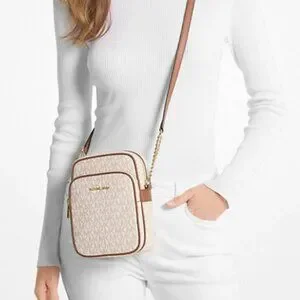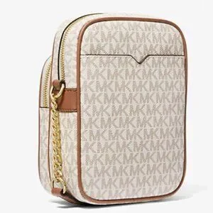 Michael Kors $398 Jet Set Travel Medium Signature Logo Crossbody Vanilla NWT