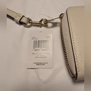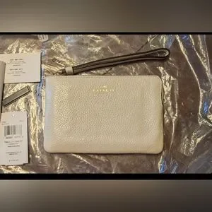Elegant and versatile, this Coach pebbled leather wallet / wristlet set in white (CHALK) is perfect for any occasion. The sleek design and premium craftsmanship make it a must-have accessory.